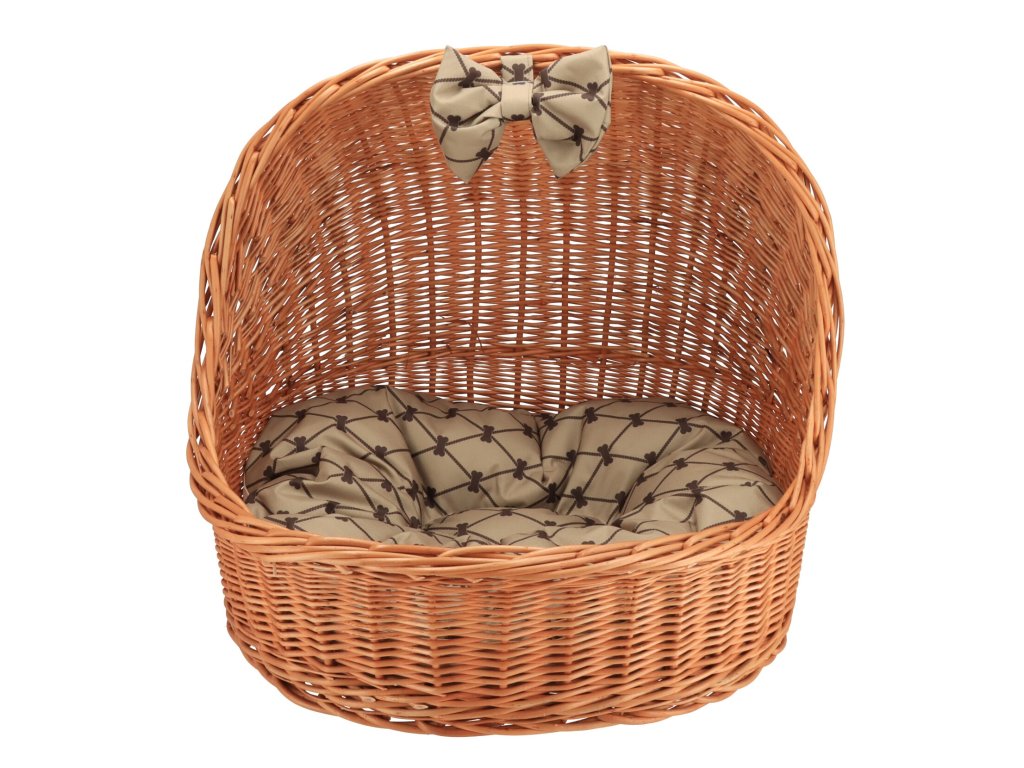 Pleteni krevet za psa s nadstrešnicom - prirodni s bež mašnom