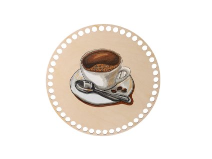 Okrugli drveni poklopac za košaru s motivom kave izrađujemo od brezove šperploče debljine 3 mm. Pogodan je za izradu heklanih košara od konca. Nudimo različite veličine .