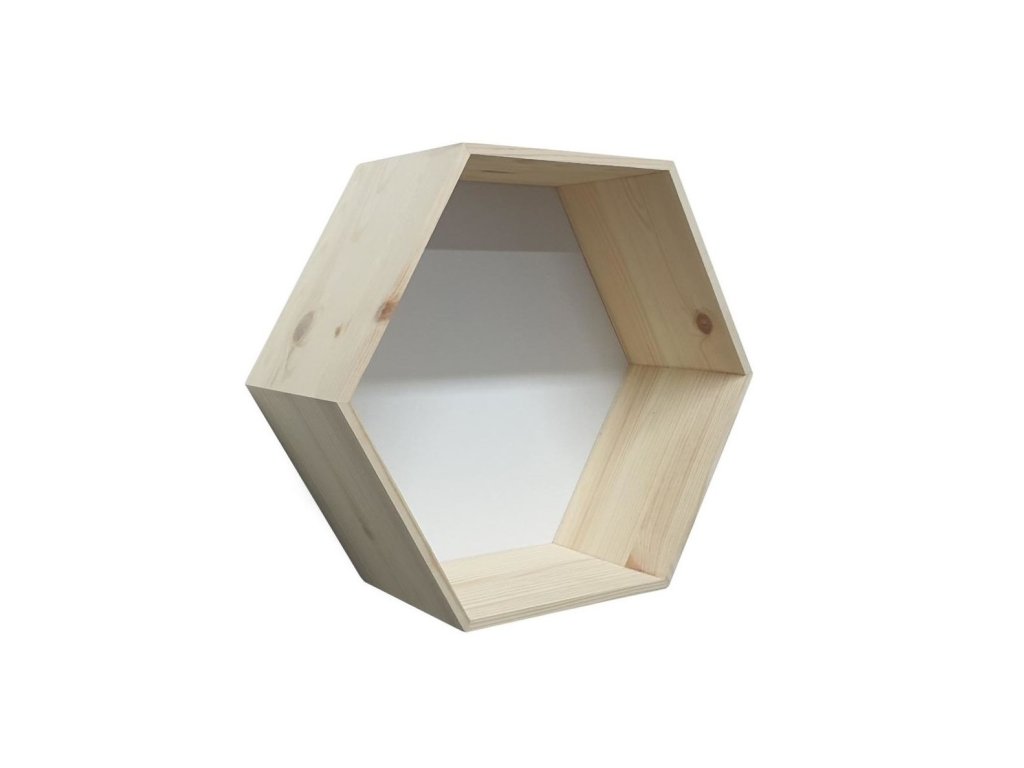 Masivna šesterokutna polica od borovine, izrađena s pažnjom na detalje, bit će moderan dodatak i unijet će pravi štih u vaše prostorije.