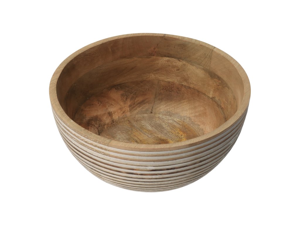 Originalna zdjela od drva manga s bijelim prugama savršena je za voće, dobru porciju svježe salate ili pakiranje čipsa i druge poslastice.