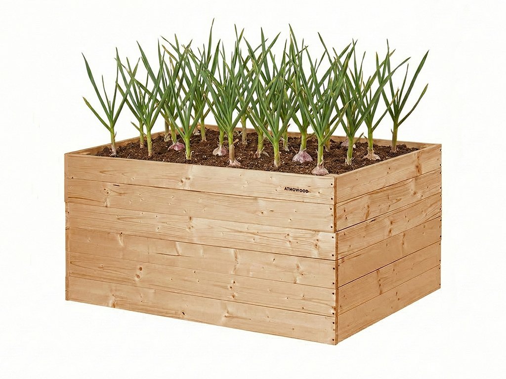 Povišena gredica od ariša marke ATMOWOOD = vrt iz snova na dohvat ruke. Izdržljivo masivno drvo podnosi kišu i sunce te omogućuje ugodan uzgoj bez nepotrebnog napora.