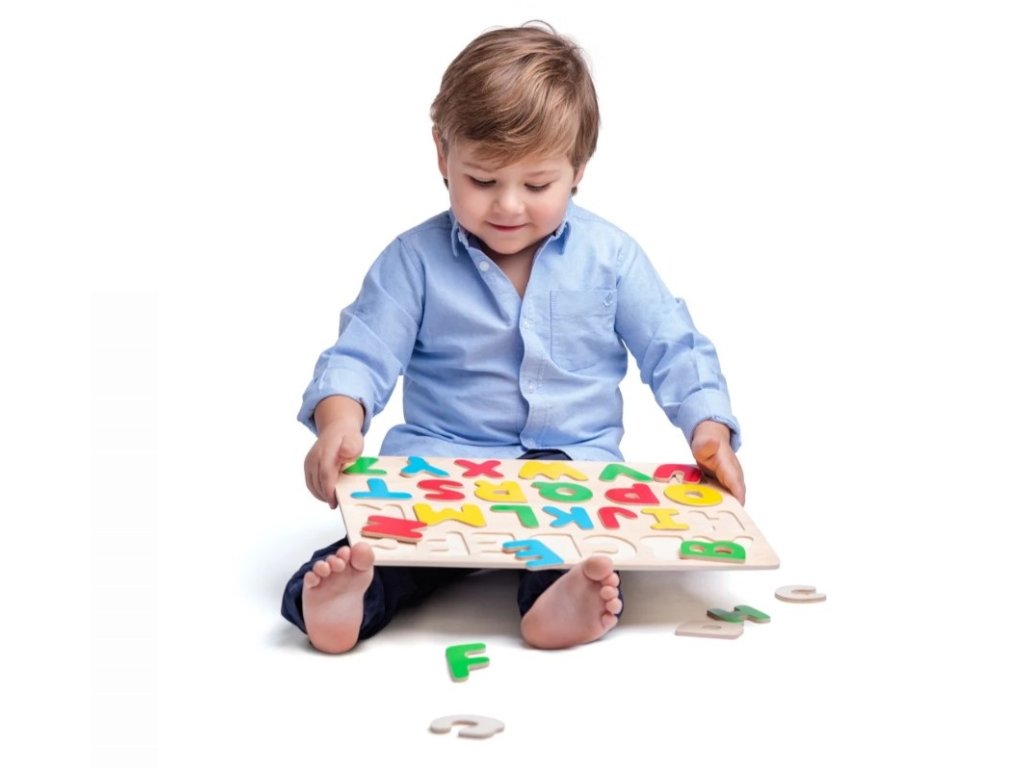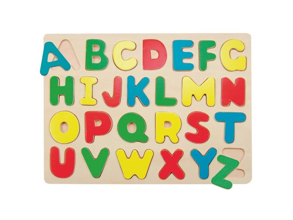 Jednostavna i poučna abeceda na drvenoj ploči.
