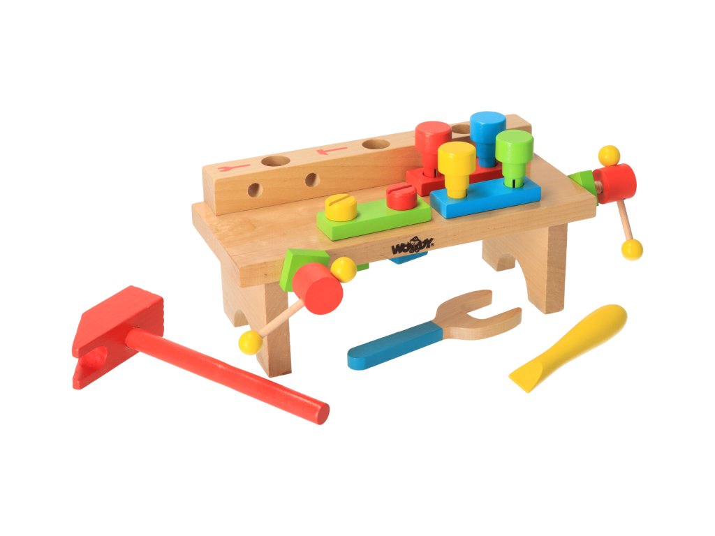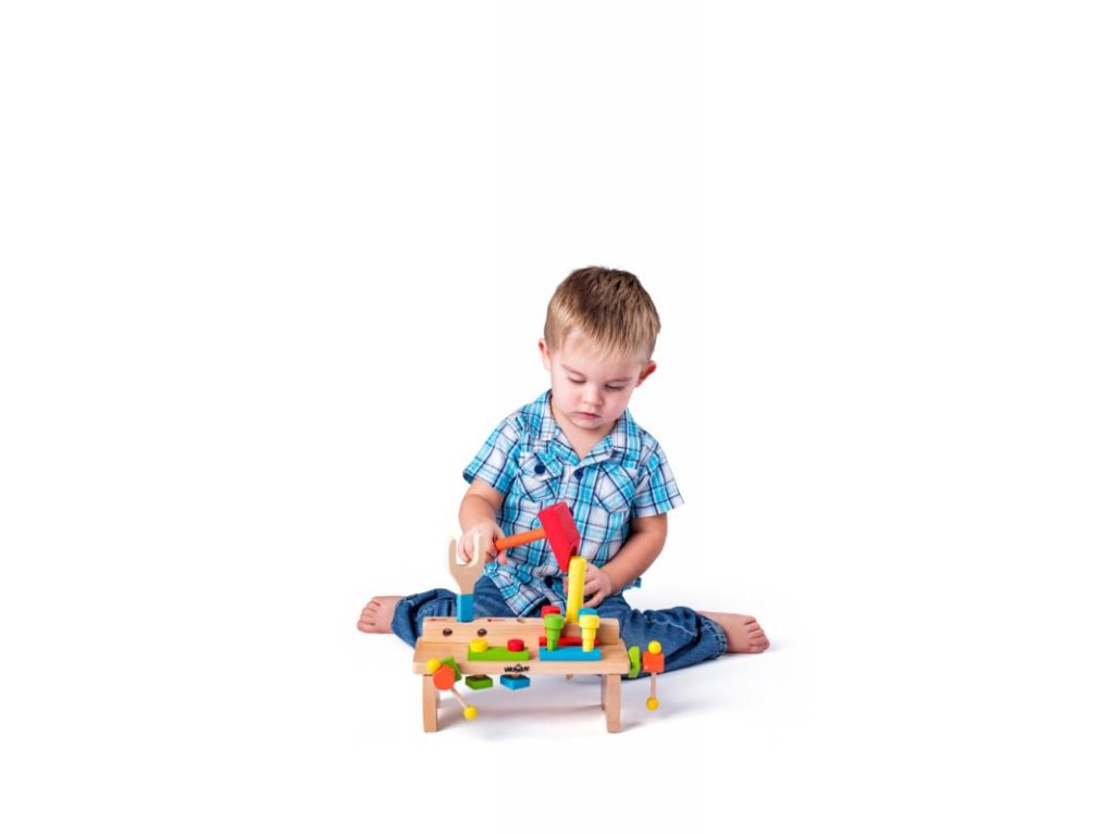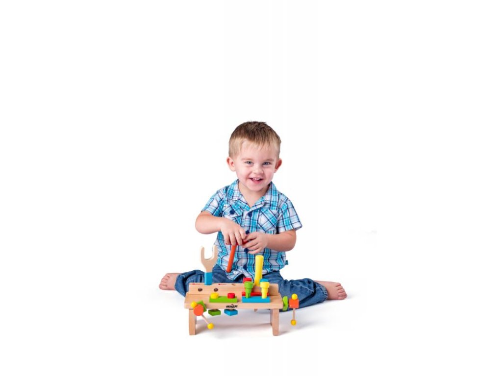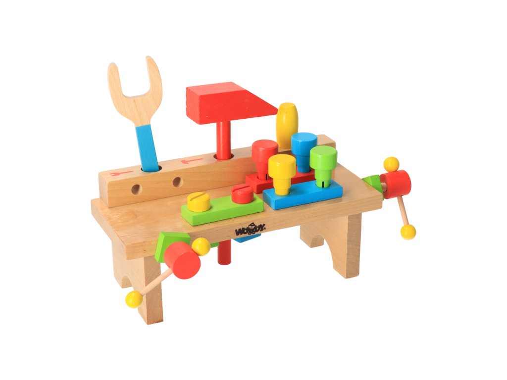 Mala drvena posuda s alatom, vijcima i ostalim alatom bez kojeg mali majstor ne može. Osim toga, s njim će se odlično zabaviti te će naučiti držati alat i njime manipulirati.