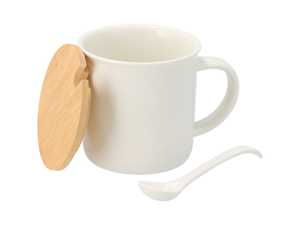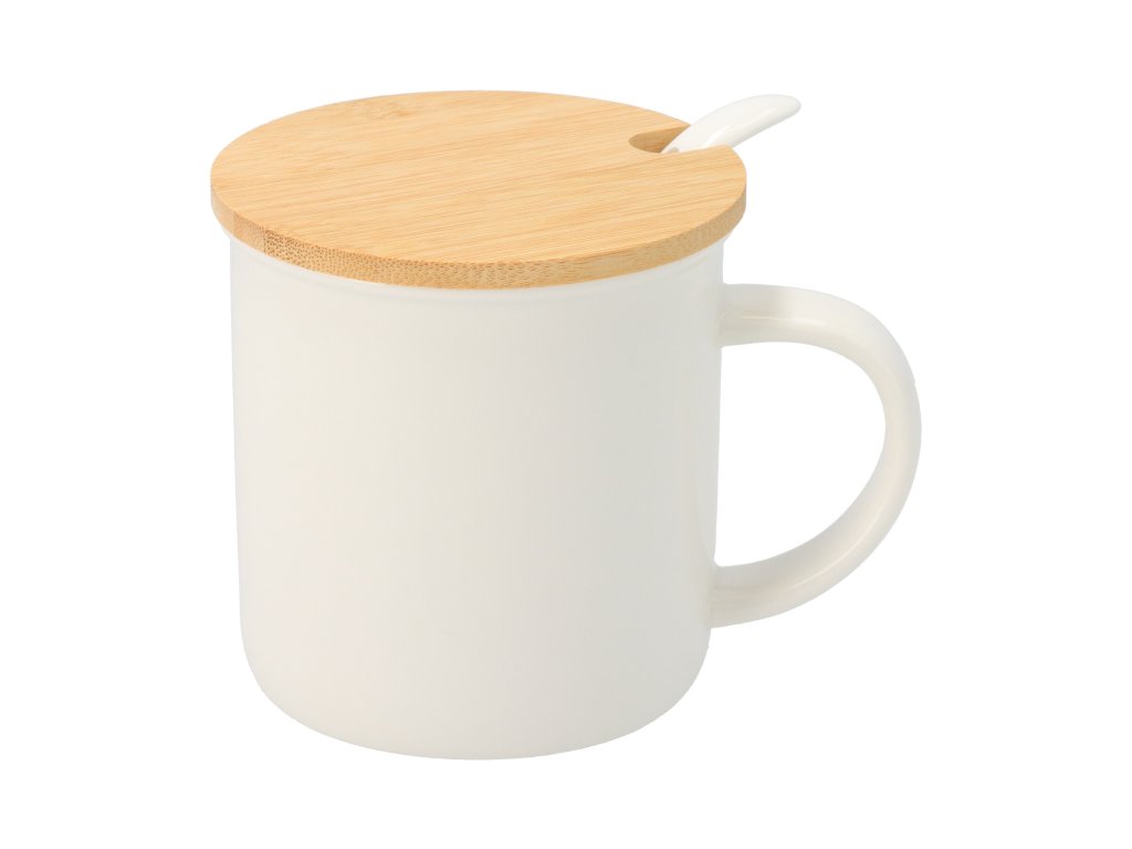 Porculanska šalica sa žličicom i poklopcem od bambusa osigurava savršen užitak u pripremljenom napitku. Zapamtite samo da drvu nije mjesto u perilici posuđa.