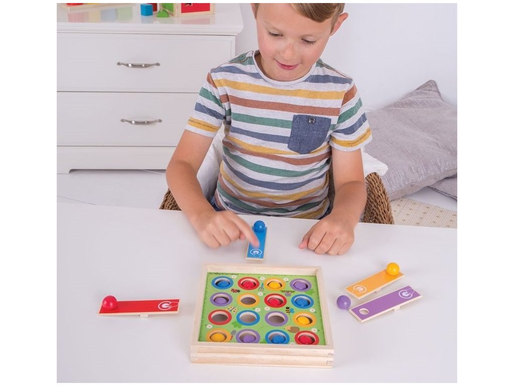 Pobjeđuje igrač koji sve četiri obojene kuglice postavi u odgovarajuće rupe.