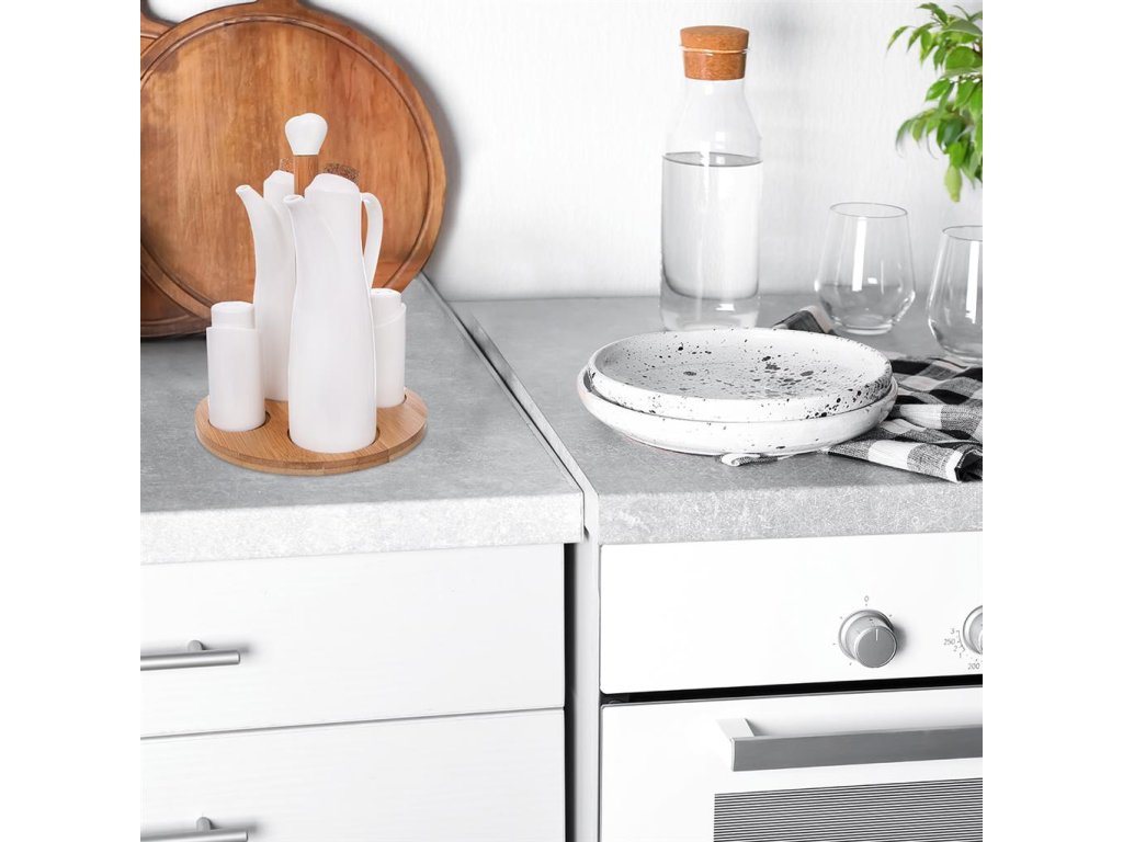Set začina je na bambusovom poslužavniku koji se lako prenosi zahvaljujući ručki u sredini.