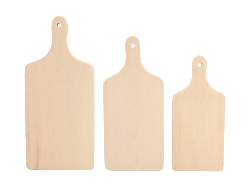 Set od 3 visokokvalitetne daske za rezanje izrađene od bukovog drveta u dimenzijama koje se najčešće koriste u kućanstvu.