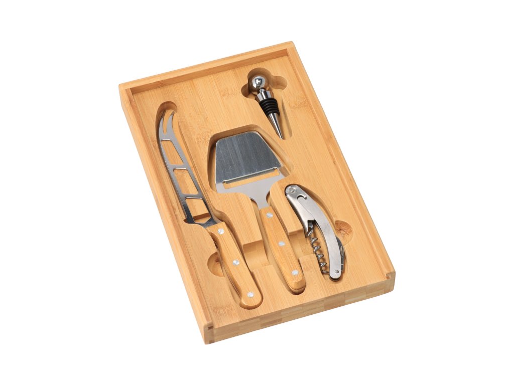 Impresionirajte svoje goste i poslužite osvježenje u stilu. Originalan i praktičan set u drvenoj kutiji sadrži sve što je potrebno za posluživanje ukusnog sira i kvalitetnog vina.