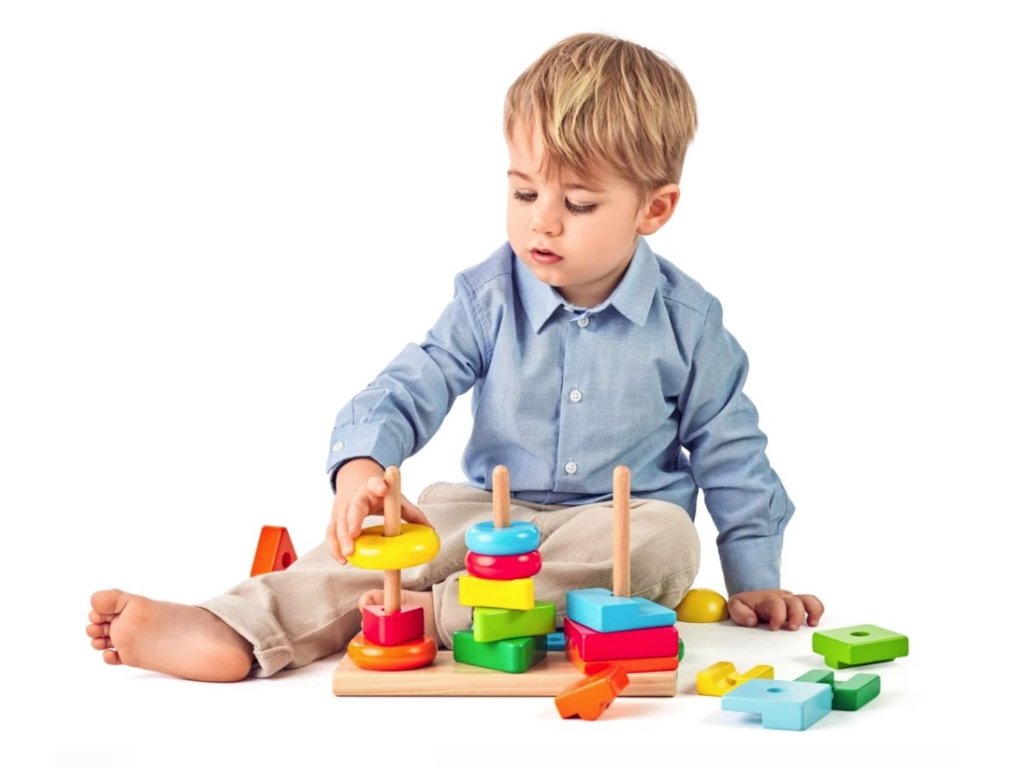 Didaktička drvena igračka koja potiče razvoj mišljenja, kombinatorike, razlikovanja boja i oblika te fine motorike kod djece.
