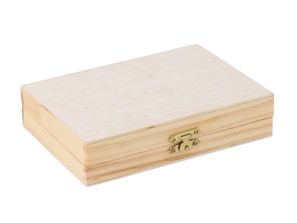 Set za slikanje u drvenoj kutiji djeci nudi sve što im je potrebno za razvoj umjetničkih vještina. Set sadrži 8 bojica, 12 vodenih boja, kist, olovku, šiljilo i gumicu.