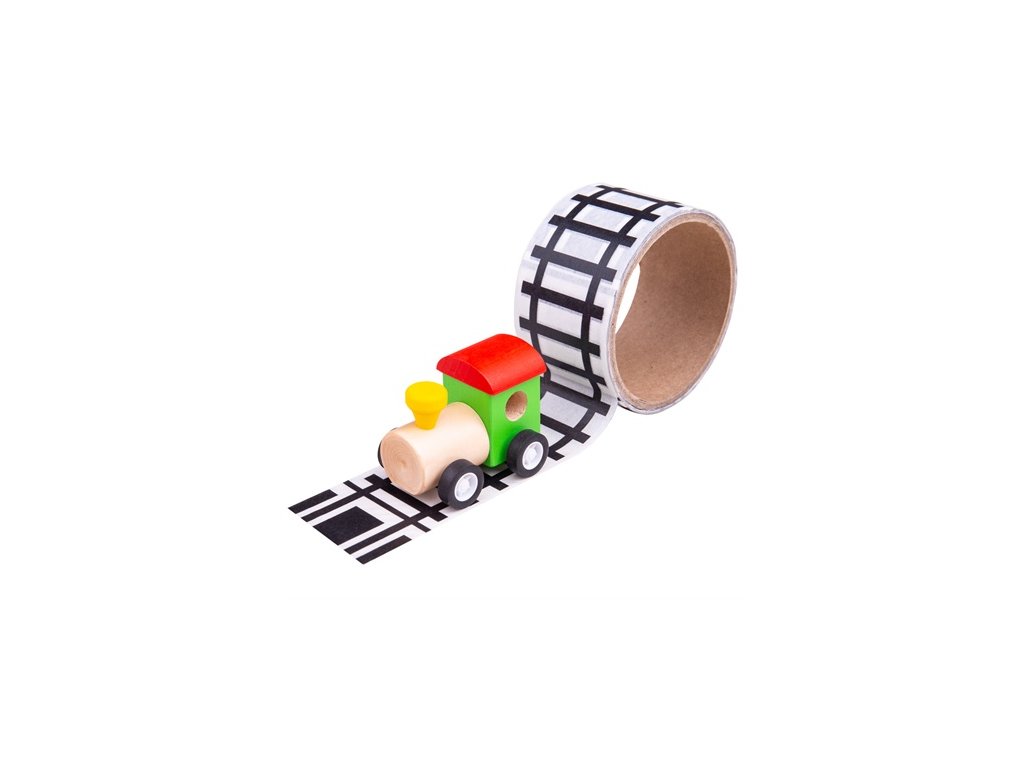 Napravite djeci tračnice prema njihovim željama. Ljepljiva traka uključuje i drveni stroj s kojim mali pustolovi putuju od stanice do stanice.