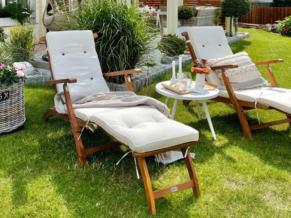 Varijabilna ležaljka, izrađena od masivnog bagremovog drva, nudi visoku udobnost sjedenja zahvaljujući podesivom naslonu i udobnom osloncu za noge. Oslonac za noge se lako uklanja, tako da ležaljku možete jednostavno pretvoriti u udobnu stolicu.