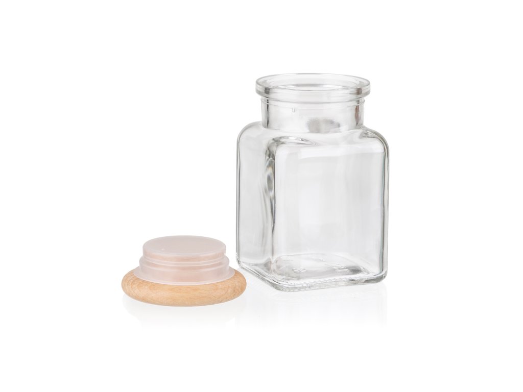 Elegantna staklena posuda za začine s poklopcem i brtvom od bukve postat će praktičan dodatak vašoj kuhinji. Zahvaljujući pečatu, začini zadržavaju svoju aromu i ne vlaže se.