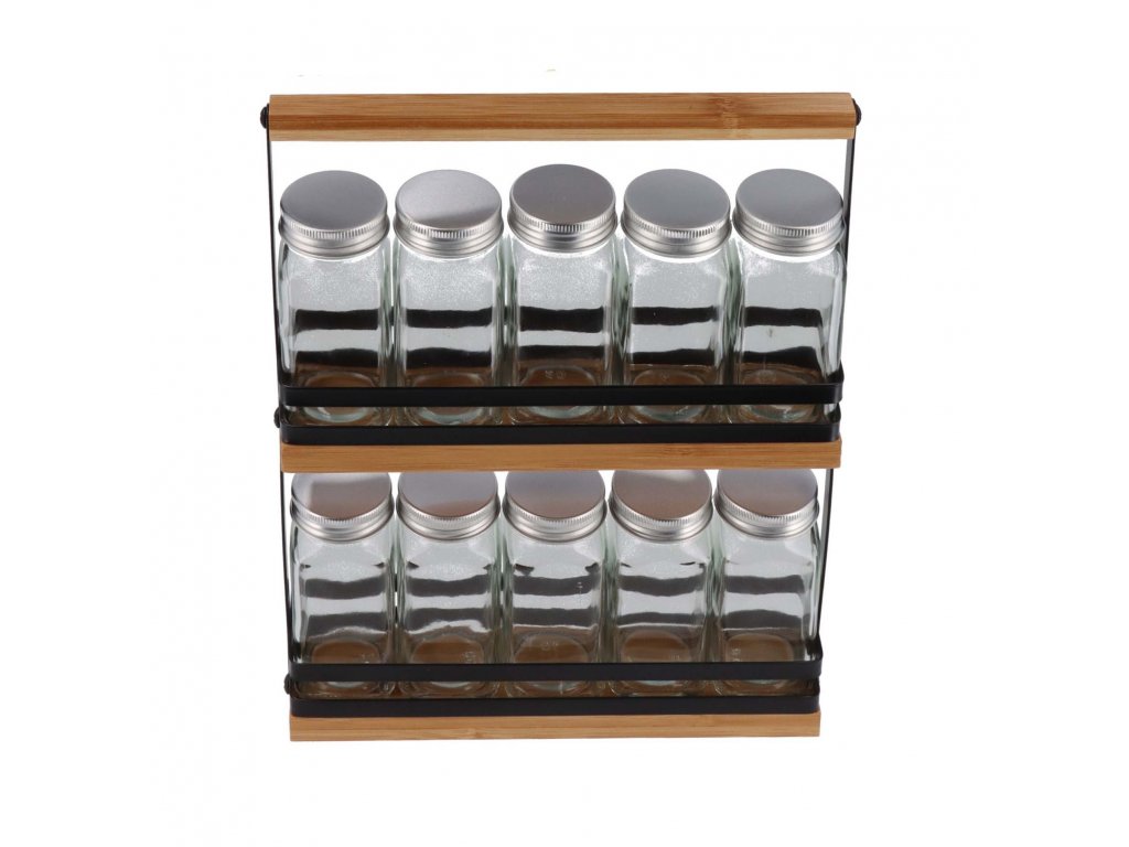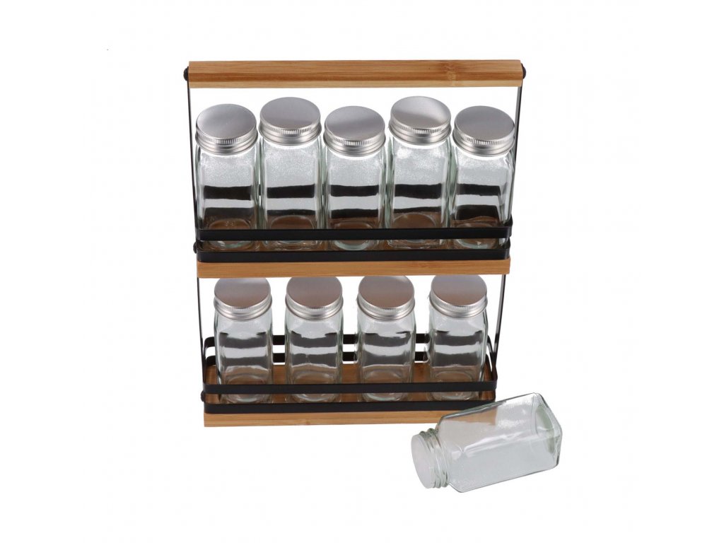 Zahvaljujući ručki, staklene začine možete udobno nositi u praktičnom stalku od bambusovog drva i začiniti svoja jela tamo gdje vam je potrebno. Set sadrži 10 začina.
