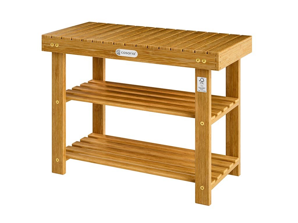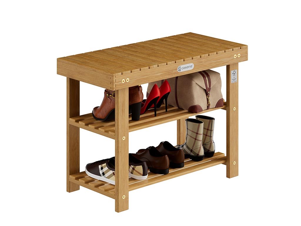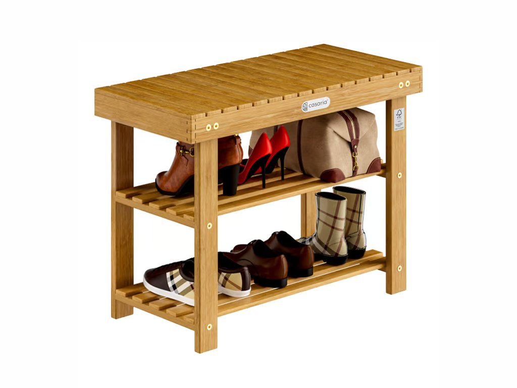 Elegantni stalak za cipele, izrađen od masivnog bagremovog drva, služi i kao praktična klupa za sjedenje, tako da možete udobno obuvati i izuvati cipele. Fiksne police pružaju dovoljno prostora za uredno odlaganje cipela, a sama klupa može poslužiti i kao dodatni prostor za pohranu.