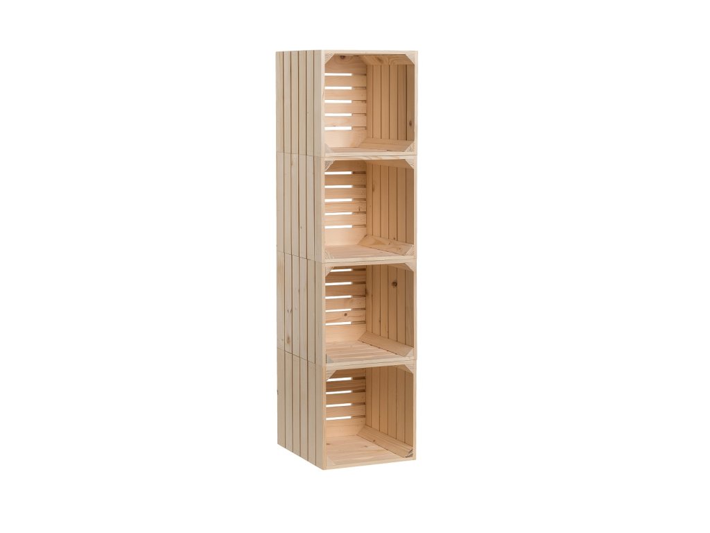 Ova drvena polica sastoji se od ukupno 4 kutije dimenzija 30 x 30 x 35 cm. Sanduci su izrađeni od borovine, koja je ostavljena u svojoj prirodnoj završnici, tj. brušena i glatka.