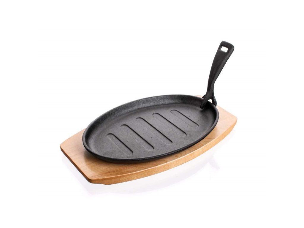 Tava od lijevanog željeza na drvenoj dasci GRADA - 27 x 17,5 cm