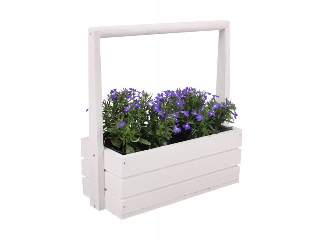 Velika drvena tegla za cvijeće s ručkom - bijela