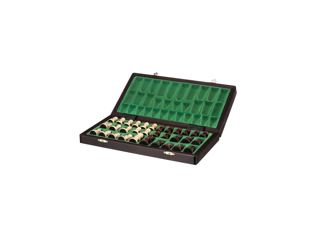Detaljno izrađen drveni magnetni šah s igraćom površinom od 35 x 35 cm oduševit će svakog ljubitelja ove klasične igre. Zbog činjenice da su figurice izrezbarene ručno, svaki je komad original.