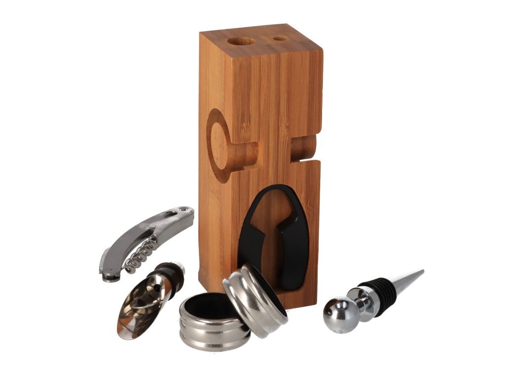 Vinski set u drvenom stalku