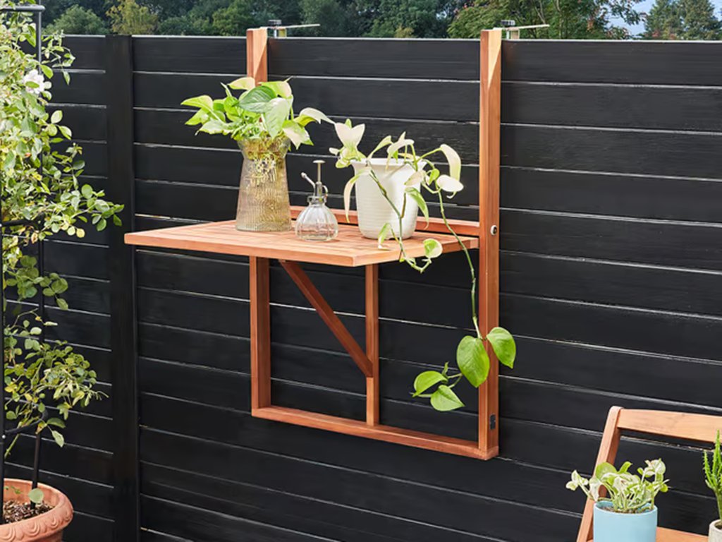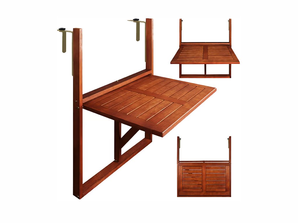 Praktični viseći balkonski stol od masivnog bagremovog drva idealno je rješenje za male balkone i uske prostore – jednostavno ga objesite preko ograde ili prozorske daske!