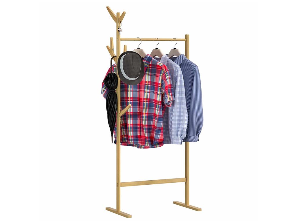 Praktični stalak za odjeću od bambusa nudi dovoljno prostora za vaše kapute, jakne i dodatke, a pritom ne zauzima puno mjesta. S 8 kuka i klasičnom vješalicom za odjeću pruža pametno 2-u-1 rješenje za svakodnevnu upotrebu u hodniku, spavaćoj sobi i garderobi.