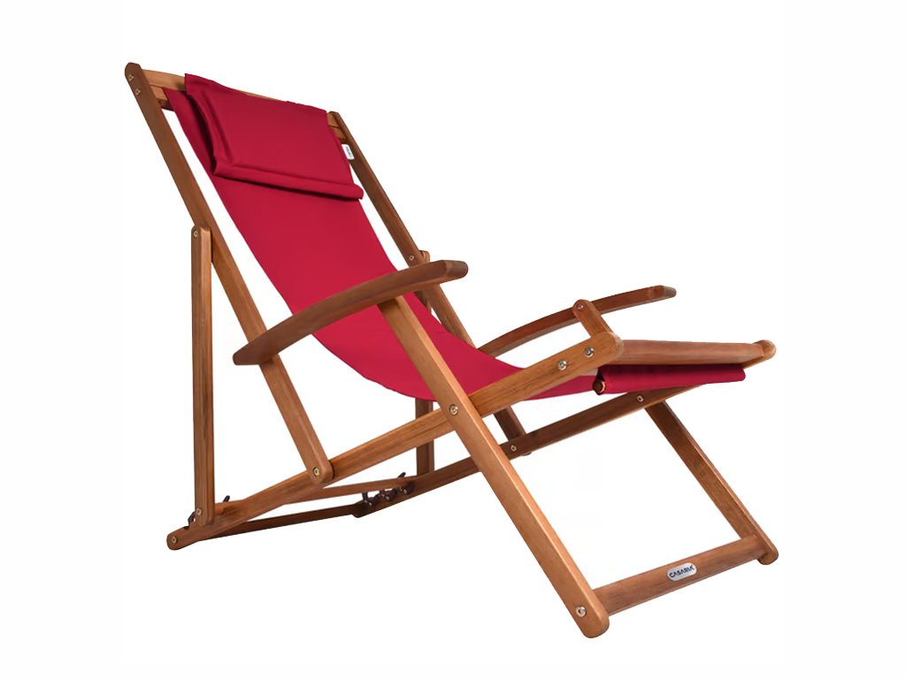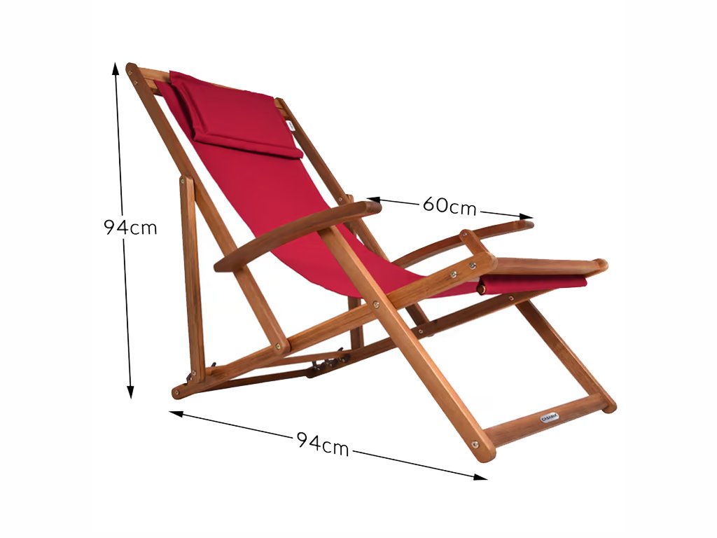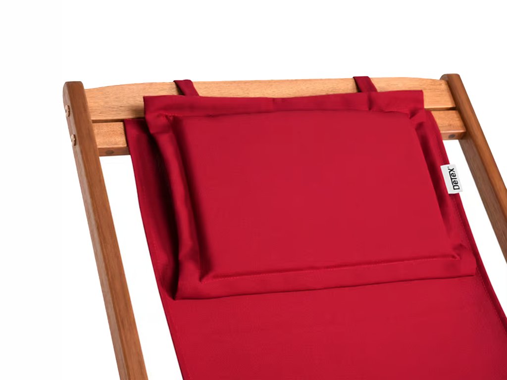 Ležaljka se može podesiti u 3 položaja i lako se sklapa, što olakšava transport i pohranu. Udobnost pružaju nasloni za ruke i uklonjivi podstavljeni jastuk za glavu s čičkom. Prozračna tkanina prilagođava se tijelu i sprječava znojenje čak i tijekom duljeg sjedenja.