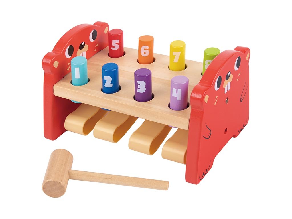 Ova sigurna igra udaranja čekićem poboljšava dječji hvat, koncentraciju i koordinaciju, ali prije svega pruža sate zabave i smijeha. Igrajte se zajedno sa svojom djecom i razvijajte njihove vještine!